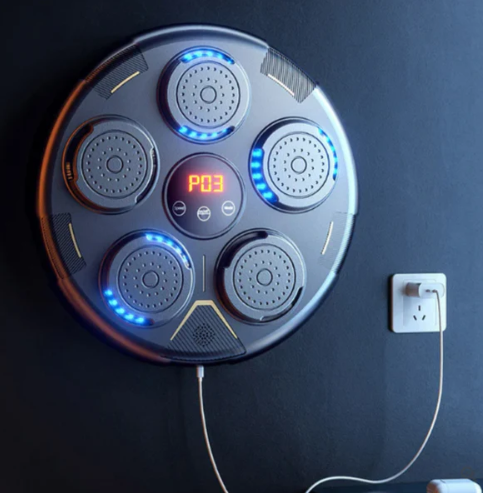 Máquina de Boxeo Musical Innovadora: Incluye un host montado en la pared con cable de carga USB y una luz de fondo que muestra objetivos en la pared, añadiendo diversión y emoción a tu entrenamiento.