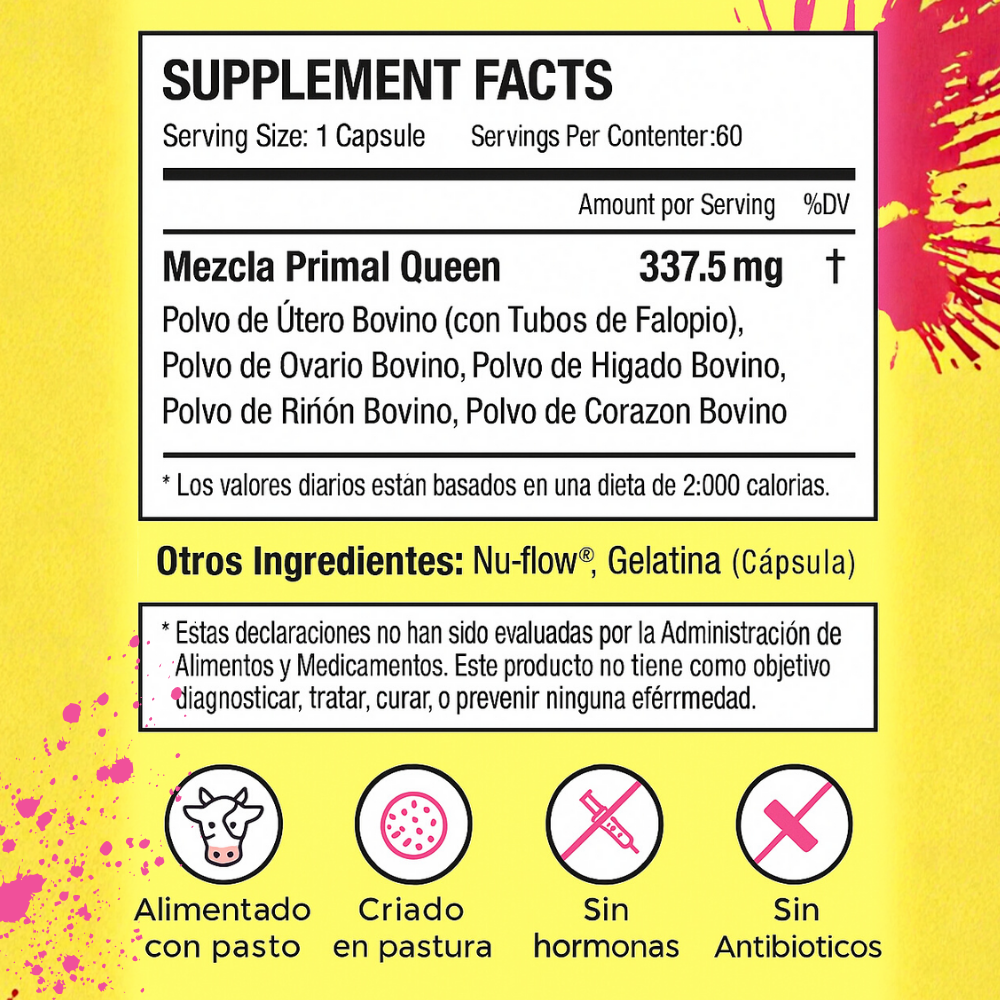 Primal Queen está elaborado con órganos bovinos 100 % naturales, garantizando potencia y efectividad real para tu salud.