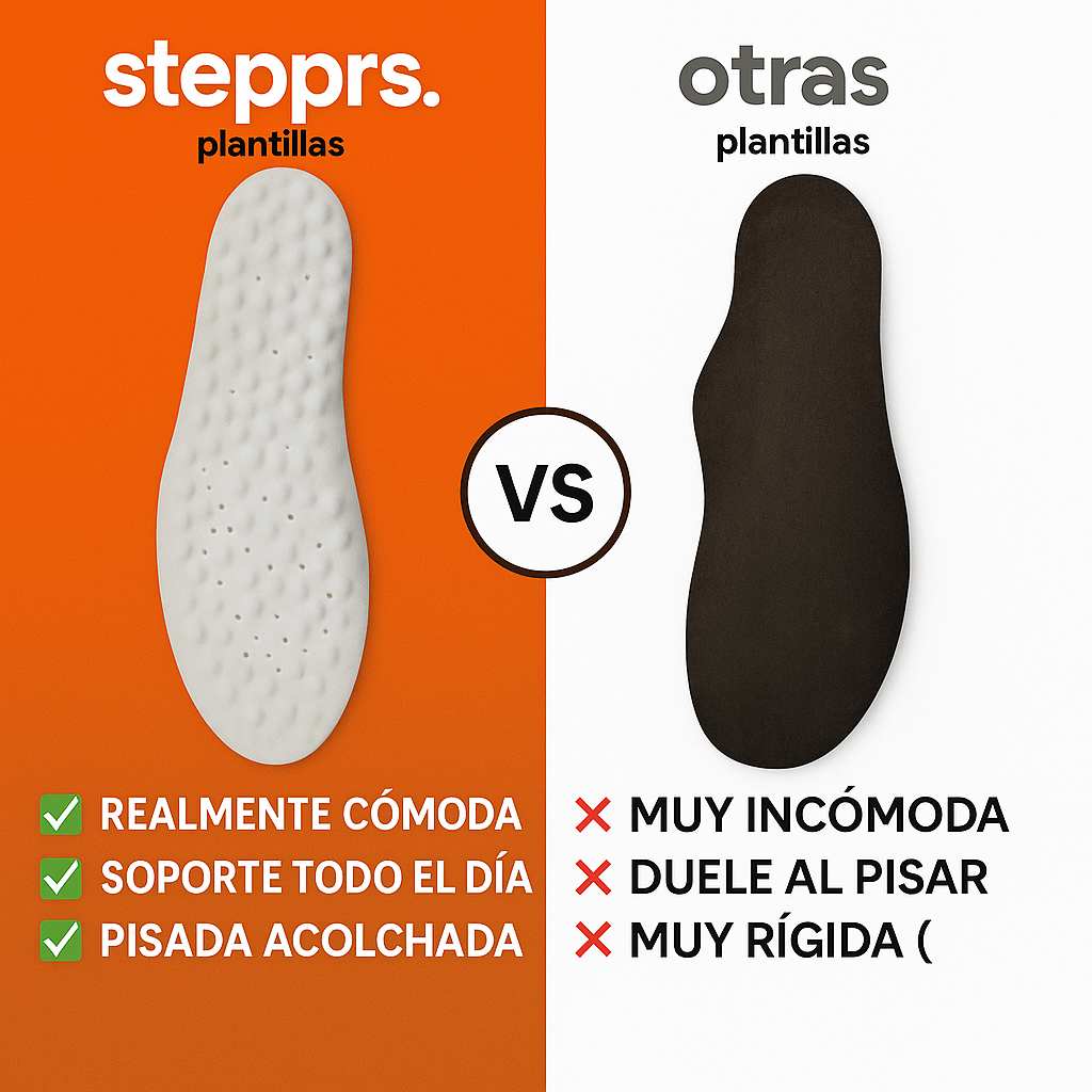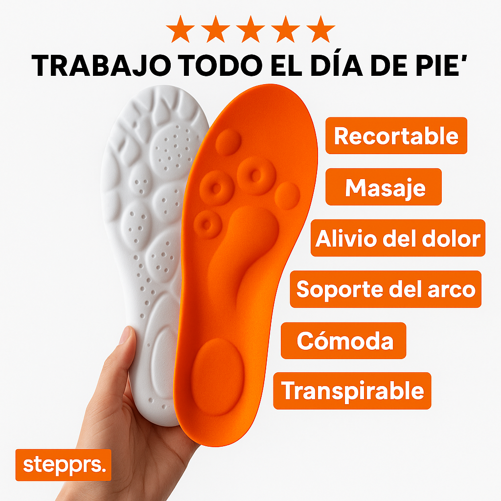 Haz de cada paso un momento de alivio con las plantillas Stepprs. Perfectas para el día a día, el trabajo o tus entrenamientos. ¡Compra ahora y aprovecha la oferta! 🚀